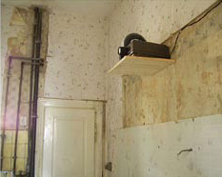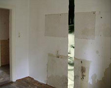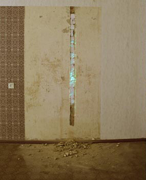 An den ausgewählten Stellen wird ein schmaler Mauerschlitz freigelegt, in den durch wechselnde Diaprojektion Bilder tatsächlicher Geschichte dieses Hauses, sowie Streifen „allgemeingültiger Erinnerungsbilder“ projeziert werden. Fragmentarisch freigelegte Erinnerung, die nach Beendigung der Ausstellung durch verschließen der Wand wieder verschwindet.