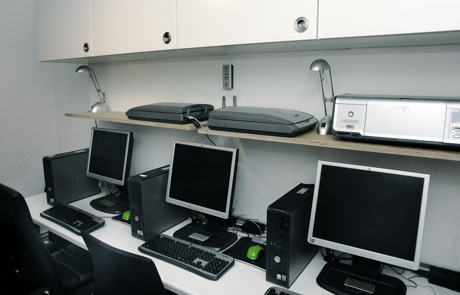 Neben der eigenen Arbeit werden Kurse zur Fotografie angeboten. Ein Seminarraum, ein großes analoges SW- Labor, digitale Arbeitsplätze sowie Kameraausleihe·analog bis 6x7cm Negativformat· stehen den Teilnehmern zur Verfügung. Analytische Bildbesprechungen und Mappenvorbereitung sind Bestandteil des Programms.