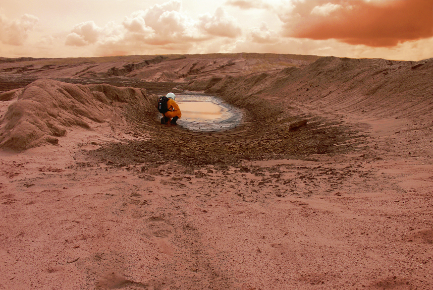 Die Fotos wurden, von einem Assistent nach meiner Vorgabe, aufgenommen. Die ersten Schritte, das Entdecken von Wasser, Anzeichen von Leben etc.